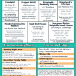 A guide to local pantries, including weekly hours in calendar format and a map with pictures and pantry requirements.